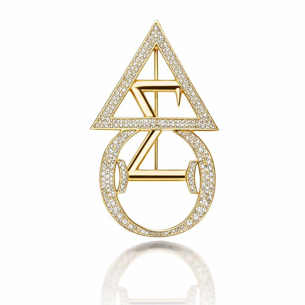 Featuring three powerful Greek symbols: Delta (Δ), representing change and strength; Sigma (Σ), the sum of all parts in harmony; and Theta (Θ), the eternal circle of life, spirit, and wholeness. Hand-set with pavé stones in radiant gold or platinum finishes, the design captures light with every movement. A signature creation of transformation, unity, and timeless elegance.