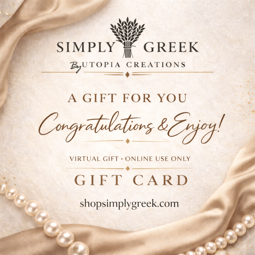 Give the gift of choice with the Simply Greek by Utopia Creations Virtual eGift Card. Delivered digitally and designed for online redemption, this gift card allows the recipient to shop premium sorority accessories, jewelry, and curated pieces directly at shopsimplygreek.com.